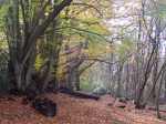 I started off down the ride from Deer Path to the moat, with the rain rat-a-tat-tatting on the hood of my North Face jacket. I passed the plantation full of birch, rowan, oak and cherry, squelching my way along a waterlogged track past the chestnut coppice. In spring time this place is a riot of bluebells, but now there is a different energy. A line of mature beeches-a hedge once undoubtedly-towers over the coppice, dark sinewy limbs and muscular trunks boasting their effortless majesty , reaching out with jade, amber, bronze and caramel pennants to taunt the spindly chestnut lances across the ride.