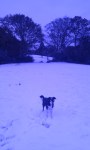 December 9 2010 I’m trapped in a snowglobe awaiting the shake that will turn the morning on its head and bring the next blizzard blasting through the valley. Or that’s what It feels like from my vanatge point perched on the upper step of the wooden style between woodland and field on my morning walk with Shep. Just behind me is the woodland edge, a hotchpotch of deciduous trees blasted by the east wind, crisp and white with hoarfrost. The upper field is ringed with mixed woodland, dipping down into the south-east and the snow-bound town of Haslemere before rising up to the spectular views from the acid sandstone of Blackdown, the second highest hill in Surrey, which inspired Tennyson. The early sunshine is a rose-hipped sherpherds curse. The field has a covering of powdery snow undulating like a pond stirred gently by the wind, frozen in a moment as if the cold which numbed my fingers had worked some magic with time too.